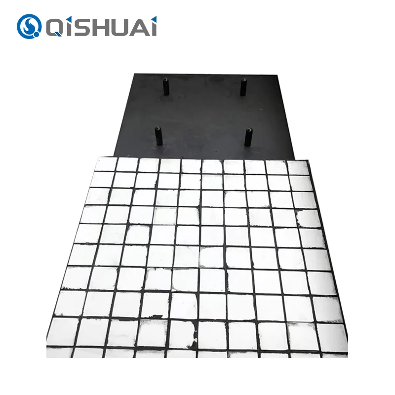 熱加硫によりセラミック、ゴム、鋼板を強固に接着し、強固な一体構造を形成します。各セラミックタイルは底部の鋼板を貫通する貫通ボルトを備えており、しっかりと溶接されているため、使用中にセラミックが剥離することはありません。